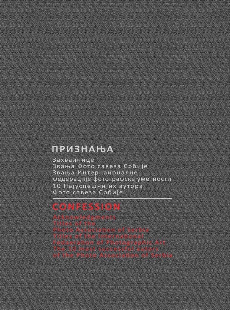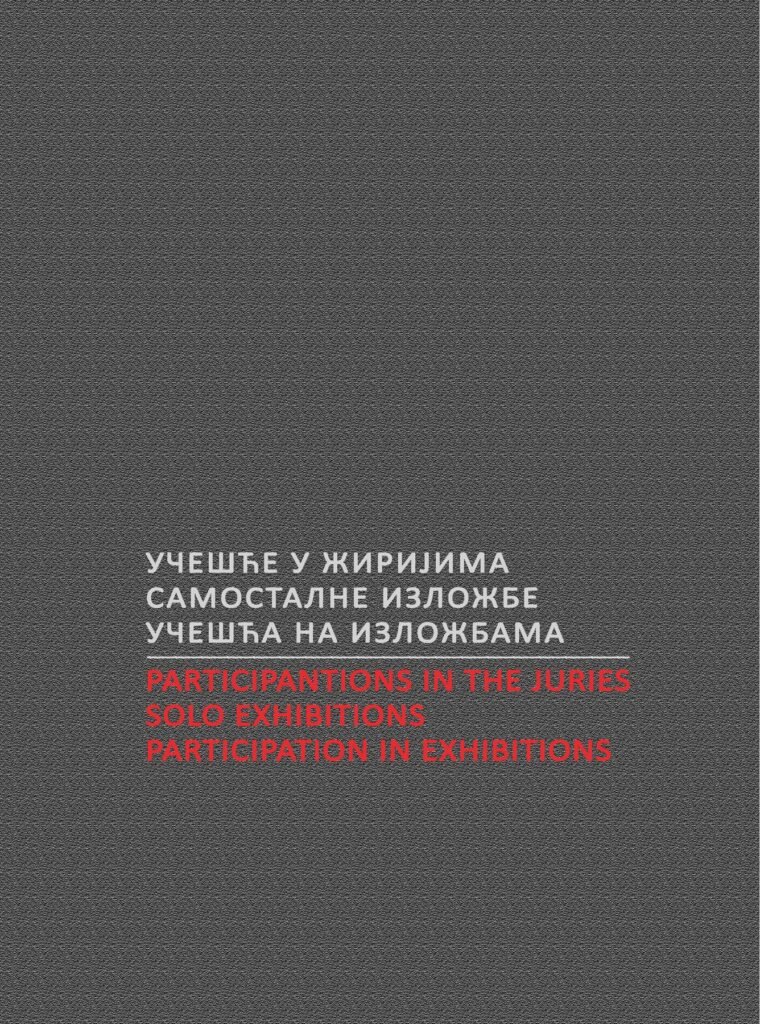 Hronološki pregled izlaganih i nagrađivanih fotografija Pročitaj Plakati i katalozi samostalnih izložbi Pročitaj Učešće u žirijima Pročitaj Album Fotografija Pročitaj Priznanja Pročitaj Tekstovi iz novina Pročitaj